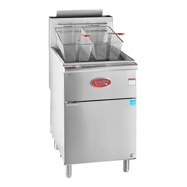 This Avantco natural gas stainless steel floor fryer is Energy Star-certified and quickly cooks your most popular fried foods, delivering excellent results every time This floor fryer features a cool zone in its fry tank, collecting excess batter and crumbs and allowing them to sink to the bottom of the tank for easy cleaning.