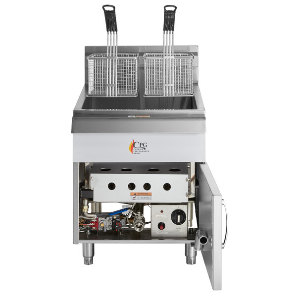 An excellent choice for concession stands, snack bars, or even sandwich shops, this Cooking Performance Group countertop fryer boasts 53,000 BTU of heating power with a 30 lb. oil capacity so that you can conveniently round out your menu with a variety of fried foods! Its precision dial gives you total control, while the heavy-duty construction ensures long-lasting performance.